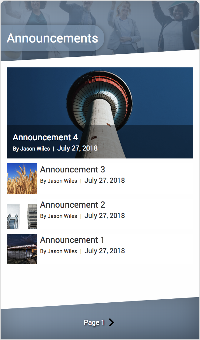 The Announcements List web part displays items from a SharePoint Announcements List in a visually appealing format.
